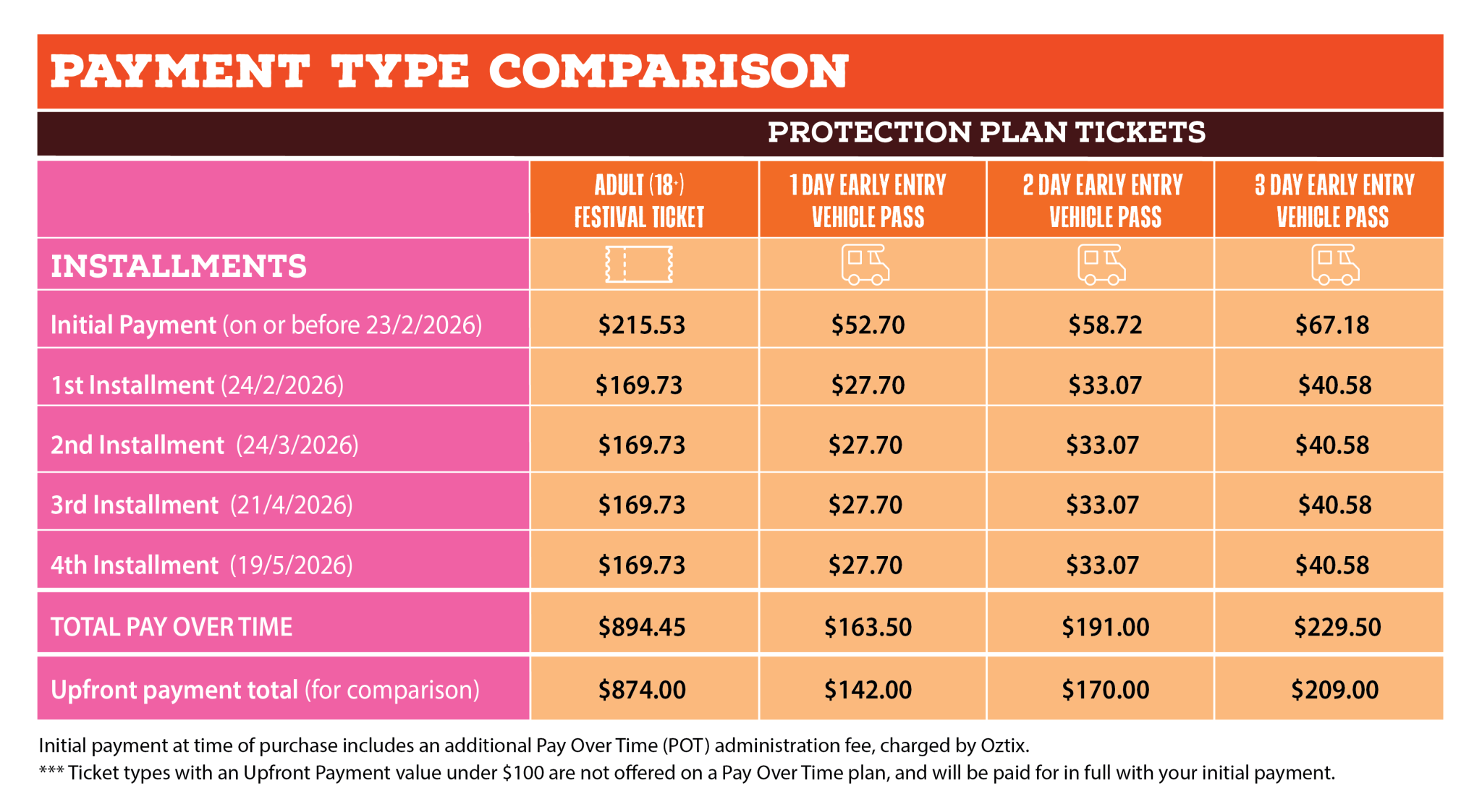 This is the initial instalment only of your Pay Over Time ticket. Remaining instalments are payable, see HERE